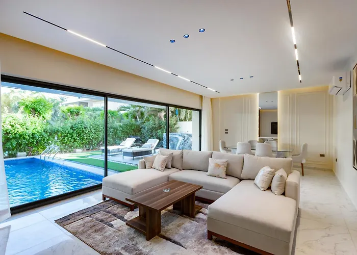 Best 2Bdr Apt In New Cairo W Private Pool And Garden is located within a 10-minute drive of Arabic Language Institute and 4.7 km from Galleria Moon Valley New Cairo. Guests can make use of Wi-Fi for both business and leisure purposes.